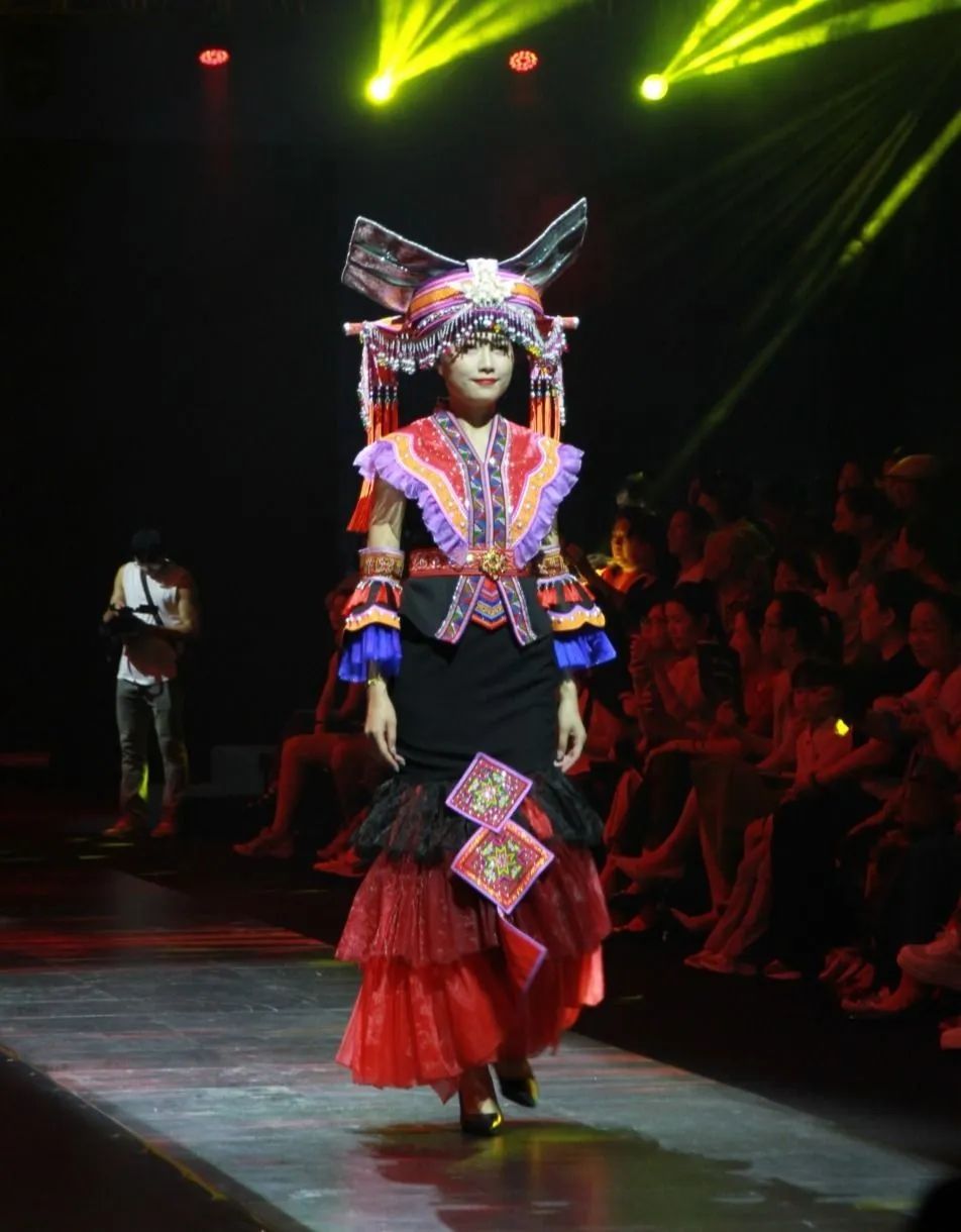金秀此次带来26套瑶族服饰,包含原生态瑶族服饰及融合了瑶族刺绣技艺与现代设计理念的瑶族盛装15套。广西民族大学相思湖学院、广西南宁职业技术学院、广西经贸职业技术学院、广西纺织工业学校等院校设计专业师生通过款式创意、图案设计、色彩搭配、工艺技法等呈现出风格各异的服装,在传统与时尚中碰撞出新的火花,探索出一条传承民族服饰文化的创新发展之路。